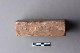 | Description / विवरण | A three-line inscription, inscribed over a broken stone slab. The script is probably Siddhamatrika. It is yet to be deciphered. |
