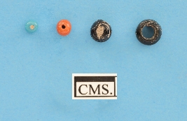 | Description / विवरण | 1. Circular shaped glass bead, short in size, light sky blue glass, has parallel perforations at the axis. Opaque in nature. Thick body. Glittery glass. 2.Circular shaped glass bead, orange color glass, has parallel perforations at the axis. Opaque in nature. Thick body. Glittery glass. 3. Circular shaped black glass bead, clay insert in center has spiraling markings on the surface, has parallel perforations at the axis, has wider apex. Opaque in nature. Thick body. Glittery glass. 4.Circular shaped black glass bead, has spiraling markings on the surface, has parallel perforations at the axis, has wider apex. Opaque in nature. Thick body. Glittery glass |