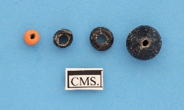 | Description / विवरण | 1. Circular shaped glass bead, orange glass, has parallel perforations at the axis. Opaque in nature. Thick & Smooth body. 2 Circular shaped glass bead, black glass, has parallel perforations at the axis, wider apex. Has spiraling markings on the surface. Opaque in nature. Thick body. Glittery glass. 3. Circular shaped glass bead, black glass, has spiraling markings on the surface, has parallel perforations at the axis. Wider apex. Opaque in nature. Thick body. Glittery glass. 4. Circular shaped glass bead, black glass, has parallel perforations at the axis, narrow apex at one side. Has spiraling markings on the surface. Heavy in weight. Opaque in nature. Thick body. Glittery glass. |