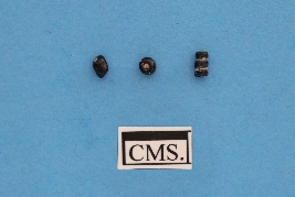 | Description / विवरण | 1. Cylindrical shaped glass bead, black glass, has parallel perforations at the axis, the edges are feeble. Opaque in nature. Thin body. Glittery glass. . 2. Circular shaped glass bead, black glass, has parallel perforations at the axis. Opaque in nature. Thick body. Glittery glass. 3. Elliptical shaped glass bead, black glass, has parallel perforations at the axis. Opaque in nature. Thick body. Glittery glass. |