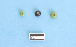 | Description / विवरण | 1. Circular oblate shaped bead, green glass, standard shaped, has parallel perforations at the axis. Opaque in nature. Thick structure. Glittery glass. 2. Circular oblate shaped bead, black glass, has parallel perforations at the axis. Opaque in nature. Thick structure. Glittery glass. 3. Circular oblate shaped short bead, green glass, has parallel perforations at the axis. Opaque in nature. Thick structure. Glittery glass. |