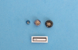 | Description / विवरण | 1. Cylindrical shaped micro bead, navy blue glass, has parallel perforations at the axis. Translucent in nature. Thin, delicate yet polished body structure. Glittery glass. 2. Circular shaped bead, navy blue glass, has crizzling marks on it, has parallel perforations at the axis. Now opaque in nature due to dust and clay earlier it could have been the translucent. Thick and polished body structure. Glittery glass. 3.Circular shaped standard bead, black glass, has spiraling marks, covered with dust, has parallel perforations at the axis. Opaque in nature. Thick and polished body structure. Glittery glass. |