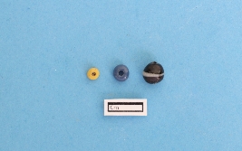 | Description / विवरण | 1. Elliptical shaped bead, yellow glass, has parallel perforations at the axis. Opaque in nature. Thin, delicate yet polished body structure. Glittery glass. 2. Short circular shaped bead, navy blue glass, has parallel perforations at the axis. Translucent in nature. Thick and delicate yet polished body structure. Glittery glass. 3. Standard circular shaped bead, black glass, has diameter more than its length, has parallel perforations at the axis. Whitish circular lines are noticed outside of the bead could be of agate layer too. Opaque in nature. Thick and delicate yet polished body structure. Glittery glass. |
