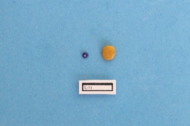 | Description / विवरण | 1 Circular oblate shaped bead, dark blue glass, has parallel perforations at the axis. Opaque in nature. Thin, delicate yet polished body structure. Glittery glass. 2. Convex bead, yellow glass, has parallel perforations at the axis. Opaque in nature. Thin, delicate yet polished body structure. Glittery glass. |