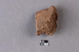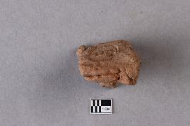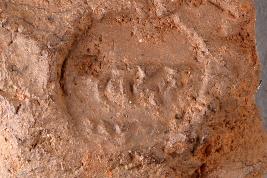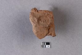 | Description / विवरण | Broken clay lump bearing a worn-out single-line legend within a circular incuse. The lotus motif is seen below. |