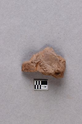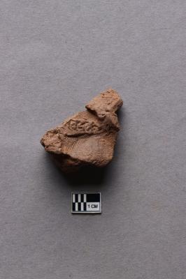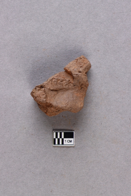 Broken clay lump bearing a few letters probably in the Siddhamatrika script.
