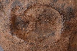 | Description / विवरण | Spherical-shaped clay lump bearing three incuses, one of them bears a clear impression of a boar. |