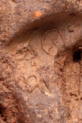 | Description / विवरण | Mahavihara sealing, incuse broken, details not clear, chakra and deer visible. |