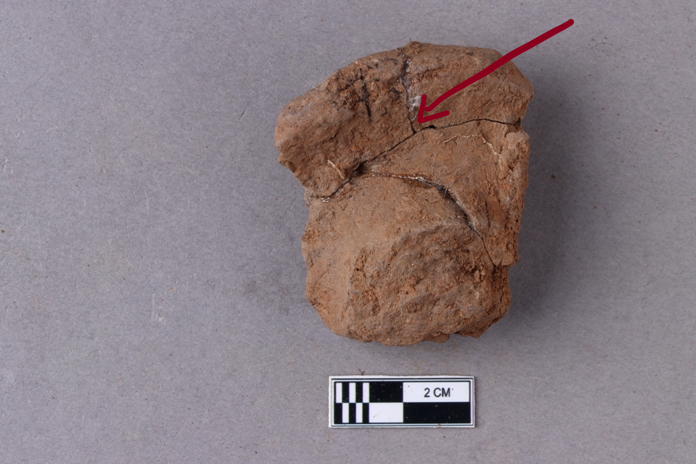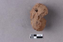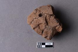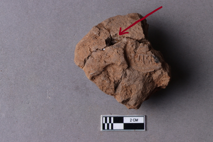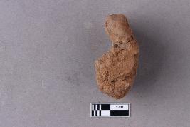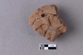 Broken clay lump bearing a few letters of a legend probably in the Siddhamatrika script.