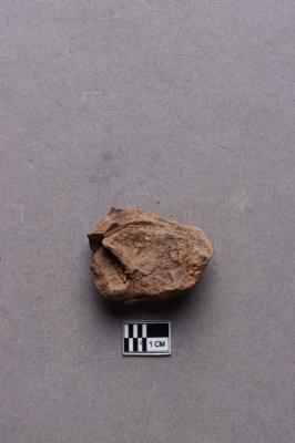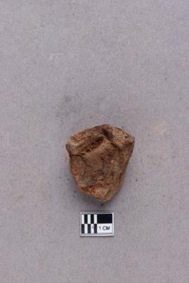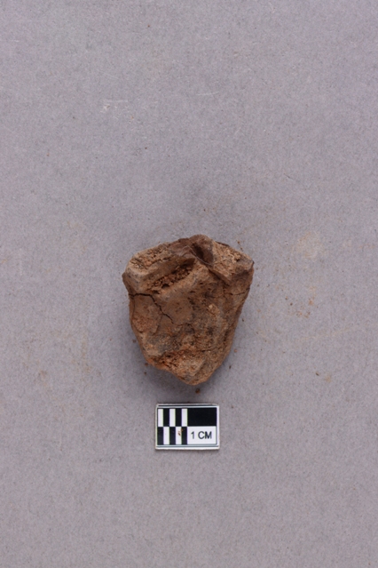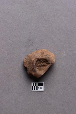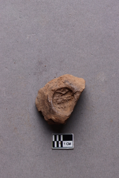 Broken clay lump bearing incuse with an impression of a conch and single line inscription and a lotus motif below. The script is probably Siddhamatrika. It is yet to be deciphered.
