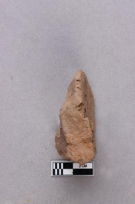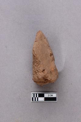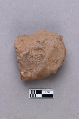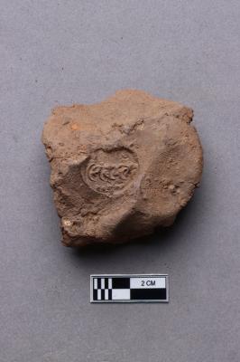 Clay lump bearing a single line legend within a circular incuse with a lotus motif below. The script is probably Siddhamatrika. It is yet to be deciphered.