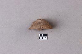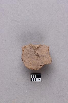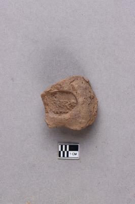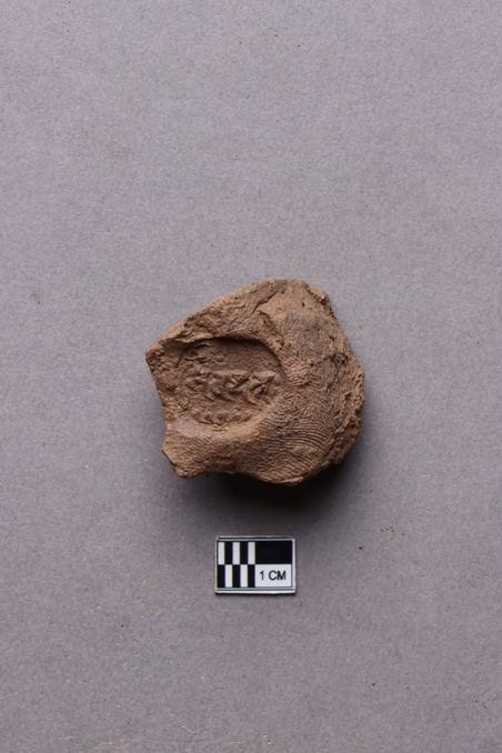 Clay lump bearing a single line legend within a circular incuse with a lotus motif below. The script is probably Siddhamatrika. It is yet to be deciphered.
