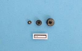 | Description / विवरण | 1 Short, circular, barrel shaped, black glass, length less than diameter. It has parallel perforations at the axis. Opaque in nature. Thin, delicate and polished body. Glittery glass. 2 Standard, circular, cylindrical shaped, black glass, length less than diameter, spiral pattern on the exterior profile. It has parallel perforations at the axis. Opaque in nature. Thick, delicate and polished body. Glittery glass. 3 Standard, spherical cane bead, black glass, opaque, length more than diameter, spiral pattern around the exterior profile. It has parallel perforations at the axis. Opaque in nature. Thick, delicate and polished body. Glittery glass. |