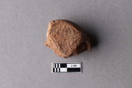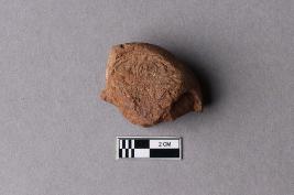 Fragment of Mahavihara sealing, chakra flanked by deer at the top, and a small incuse are noticed on its right side.