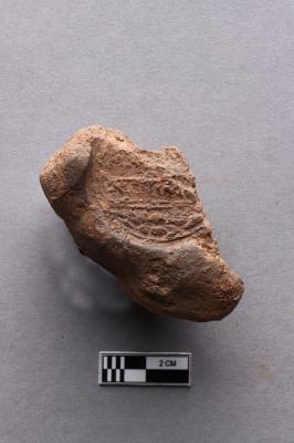 | Description / विवरण | Fragment of clay sealing with worn-out letters of probably Siddhamatrika script with a lotus motif below. It has not yet been deciphered. |