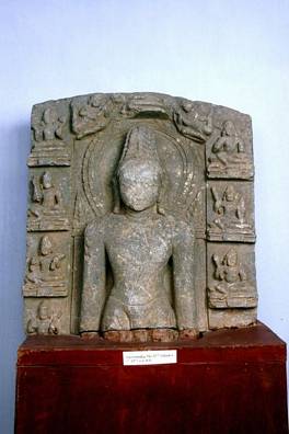 | Description / विवरण | Rishabhnatha the first tirthankara standing in kayotsarga posture with Navagrahas on both his sides. Upper half of the stele. |