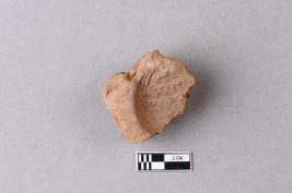 | Description / विवरण | Broken clay lump, bearing part of a worn-out legend. |