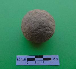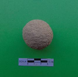 | Description / विवरण | Medium sized, spherical shaped stone sling ball is in buff color, having rough surface and circular section. |