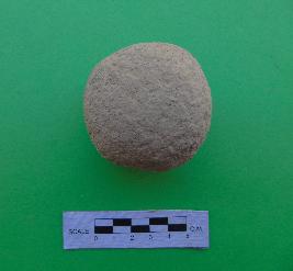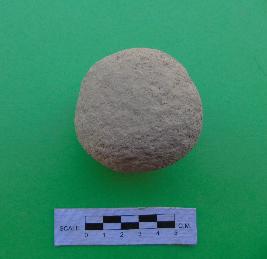 | Description / विवरण | A piece of dressed stone is spherical in shape, having rough surface. It is probably used as a hammer stone. |