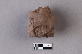 | Description / विवरण | Broken clay lump bears two incuses, and a few worn-out letters of a legend are partly visible with a conch motif above in one of the incuses. |