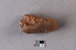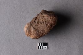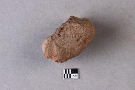 | Description / विवरण | Broken clay sealing with an oval incuse, bearing a two-line inscription.The script is probably Siddhamatrika. It is yet to be deciphered. |