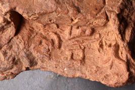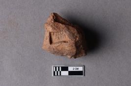 | Description / विवरण | Clay lump bearing two incuses, one of rectangular shape with a single line inscription with probably the following alphabets त ग भ, while the other bears the Mahavihara legend. The legends are yet to be deciphered. The major portion is broken. |