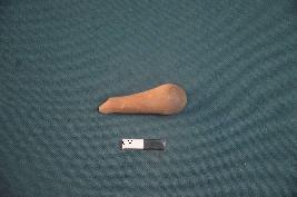 | Description / विवरण | A handmade terracotta stopper made with fine clay having broken tip and rounded base. The surface of the object is smooth and red in colour. |