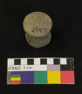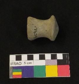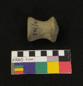 | Description / विवरण | Terracotta gamesman is partly blackish and dull red in color, made of well levigated clay, having damru shaped smooth body with convex top and flat circular base. It also has a faded traces of line design at top of it. |