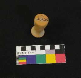 | Description / विवरण | Well-fired, red color terracotta gamesman is made of well-levigated clay, having a long smooth body, convex top, and flat circular base |