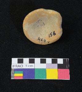 | Description / विवरण | Well-fired, dull red color terracotta gamesman is made of well-levigated clay, having a one-footed circular shaped flat base, smooth body, and thick knob. |