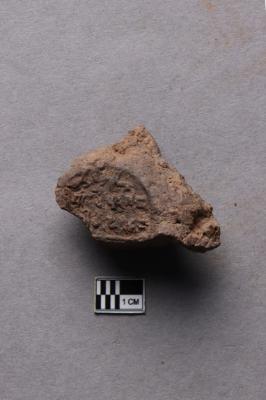 | Description / विवरण | Mahavihara sealing, showing a broken circular incuse bearing a partially available two-line inscription in the Siddhamatrika script, and chakra flanked by deer motif. |