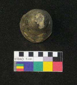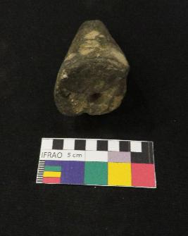 | Description / विवरण | Well fired, conical shaped terracotta object is black in color, made of well levigated clay, having damaged top, smooth body and circular flat base with a hole. |