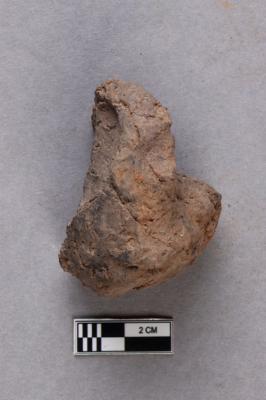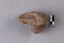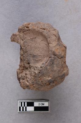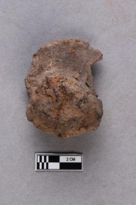 | Description / विवरण | Broken clay sealing with a circular incuse, details obliterated due to wearing off. A knob-like projection is seen at the back. |