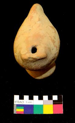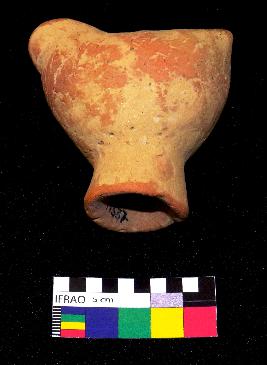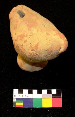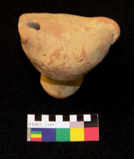 | Description / विवरण | Well-fired, red color, bird-shaped terracotta whistle is standing on a cylindrical stand, made of well-levigated clay, having a broken front, elongated hollow body, cylindrical hollow stand and a hole on one side. The object is called whistle because it has a hole that produces sound by forcing air through it. |