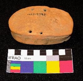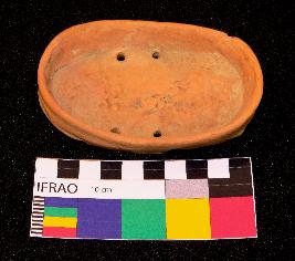 | Description / विवरण | Well fired, oval-shaped terracotta toy cradle is red in color, made of well-levigated clay, has raised sides, an oval-shaped flat base with two perforations on either side and a smooth body |