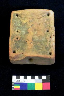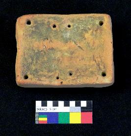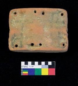 | Description / विवरण | Well fired, rectangular shaped terracotta toy cart frame is red in color, made of well levigated clay, having rectangular section, flat smooth surface, four perforations on both large sides and a hole on each ends. |