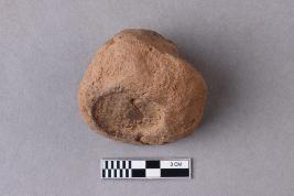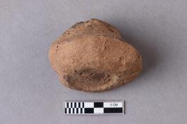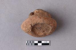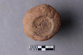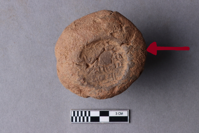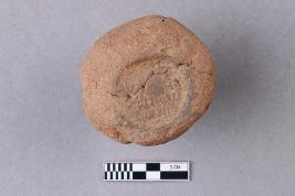 Mahavihara sealing with a circular incuse and a partially visible legend probably in the Siddhamatrika script. A knob is seen at the back.