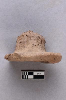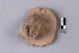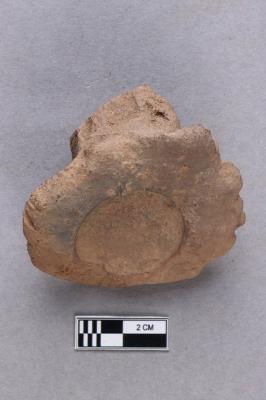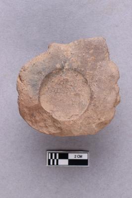 | Description / विवरण | Clay sealing with a circular incuse and worn-out details. A knob is seen at the back. |
