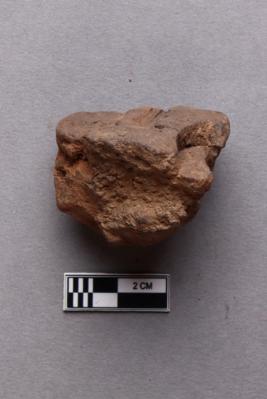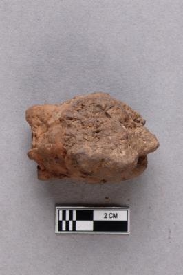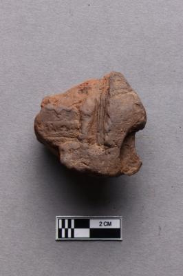 | Description / विवरण | Clay lump bearing a broken incuse having a single line partially visible inscription. |