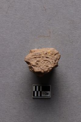 | Description / विवरण | Fragment of Mahavihara sealing with a clear chakra motif and the rest missing. |