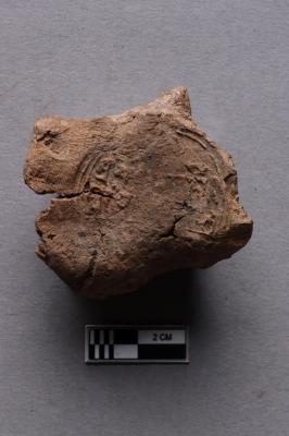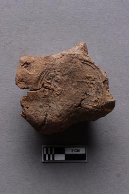 | Description / विवरण | Mahavihara sealing with circular incuse and worn-out details. Fingerprints are visible all over the incuse. Reed marks are seen at the back. |