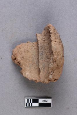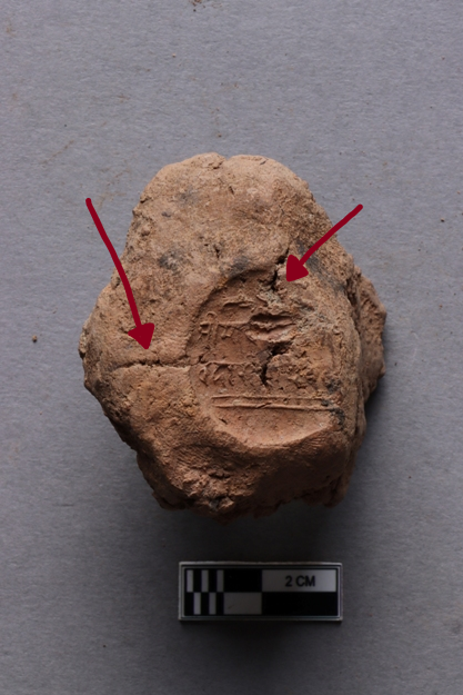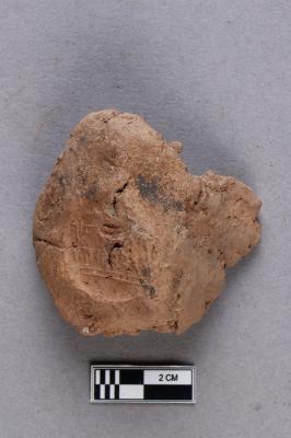 Mahavihara sealing with circular incuse, the legend at places obliterated due to damage. The script is probably Siddhamatrika. Reed marks are seen at the back.