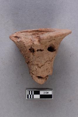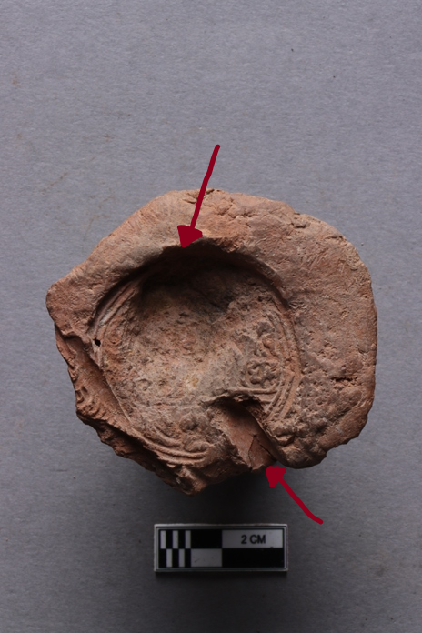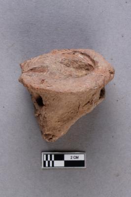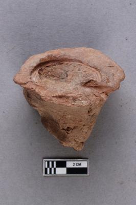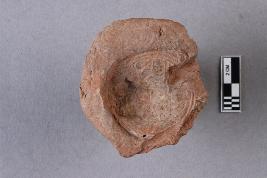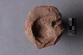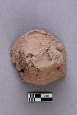 Mahavihara sealing with a circular incuse wherein the details have been obliterated. The back portion has a knob. The evidence of another incuse is partially visible at the periphery of the clay lump.