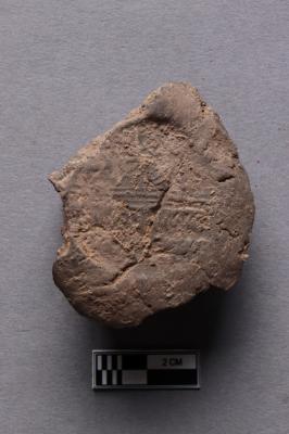| Description / विवरण | Mahavihara sealing with the left portion of the lump broken. Details are slightly worn-out. A knob is seen at the back. |