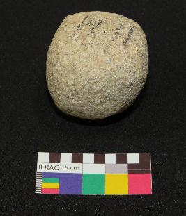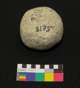 | Description / विवरण | Yellowish color, almost globular shaped stone ball, is made of medium coarse grain stone having slightly rough surface. |