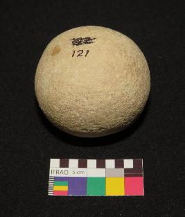 | Description / विवरण | Medium sized, globular shaped stone ball is made of fine grain material having polished smooth surface. |