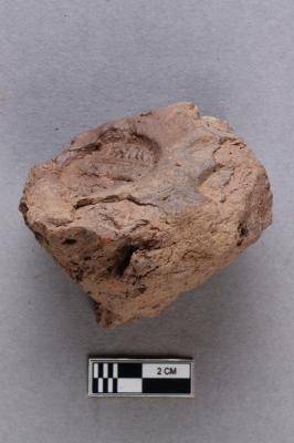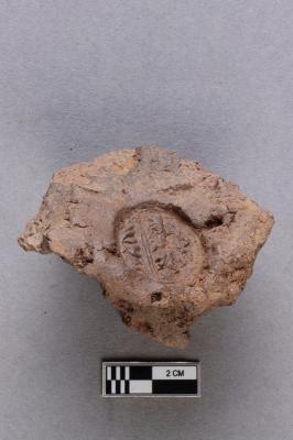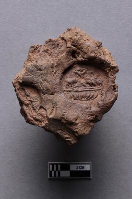 | Description / विवरण | Clay sealing depicts defaced figures of elephants facing each other and a flower motif. There are two more broken incuses on the same lump. |