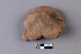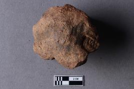 | Description / विवरण | Broken Clay lump bearing single incuse having a partially available line of inscription with flower motif below. |