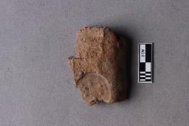 | Description / विवरण | Clay lump fragment having a partially available circular incuse bearing a worn-out impression of a flower motif. |