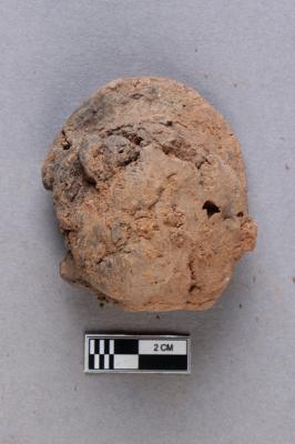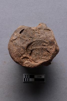 | Description / विवरण | Clay lump having damaged incuse bearing a worn-out Mahavihara legend as it was mentioned in the Antiquity Register. A knob is seen at the back. |